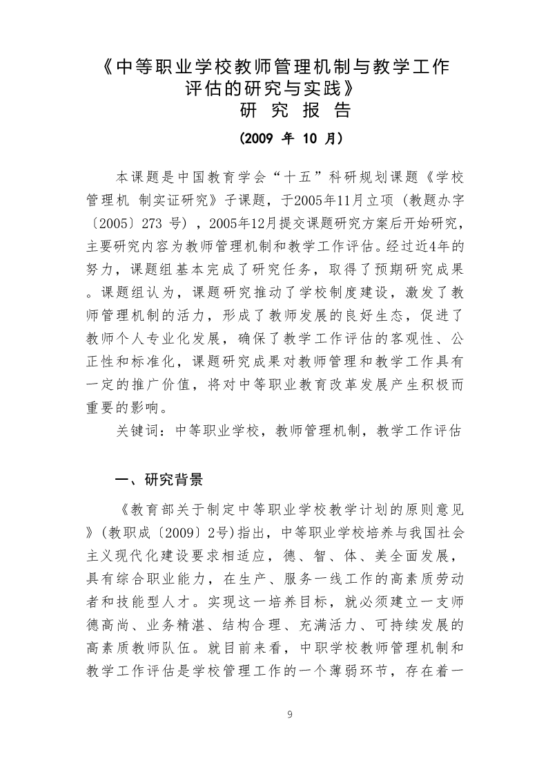 《中等职业学校教师管理机制与教学工作评估的研究与实践》研究报告
