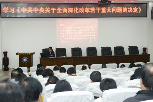 随后,胡校长对《中共中央关于全面深化改革若干重大问题的决定》进行了解读,尤其是对关于教育改革方面的内容进行了重点讲解。