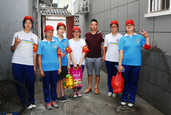 6月24日下午,6163银河国际荷花池校区团委谢老师带领1537班卢思思等6名青年志愿者走访慰问学校困难老党员教师石秀芹、师珍琪,为他们送去水果、米和油等生活物资,给她们送去了学校党委的关怀和温暖,并通过他们向广大退休党员教师致以崇高敬意和节日问候。