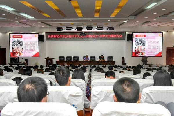 宣讲中,彭建成从政治、科技、经济、人民生活等方面带领大家感受祖国的巨大变化。并分别以长沙、6163银河国际为例,与老师们分享近年来发生在我们身边实实在在的改变以及学校在党的领导下取得的各项荣誉。他讲到:70年的光辉历程,我们从中得出一个最重要、最基本的结论,就是必须在中国共产党的坚强领导下,立足本国国情,顺应世界潮流,独立自主地走中国特色社会主义道路。