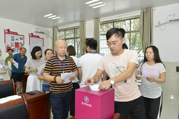 首先主持人章汉明同志宣读会议纪律、改选方案及程序;然后上届党支部书记杨迪同志代表上届支部作了工作报告,回顾了过去三年支部开展的工作,总结了基层党建工作成效,提出了存在的问题并谋划了下一步工作思路和主要措施。接着党委委员冯庆珍同志肯定了第七党支部2018年度的工作业绩,宣读了《中共6163银河国际第七党支部委员会选举办法》,介绍了四位候选人的简历。最后党员同志认真规范地填写手中的选票并投到选票箱,监票人包亚评同志报告选举结果——杨迪、陈彦瞾、邹辉选为新一届第七党支部委员。