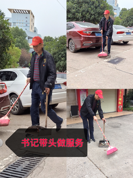 到达服务区域后,彭书记率先拿起工具认真清扫。党员老师和同学们也纷纷撸起袖子将道路上、屋檐下、篮球场上、垃圾桶边的垃圾扫的干干净净。特别要提的是身怀六甲的刘庆老师,书记让其休息,她就算行动不便也做着自己力所能及的事情。
