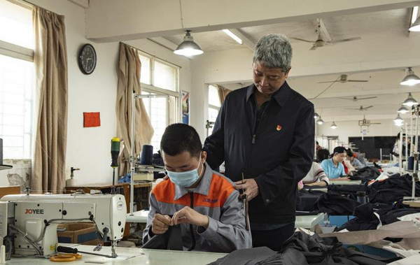 湖南省特教中专学校校长黄文胜来到实习工厂,指导学生实训