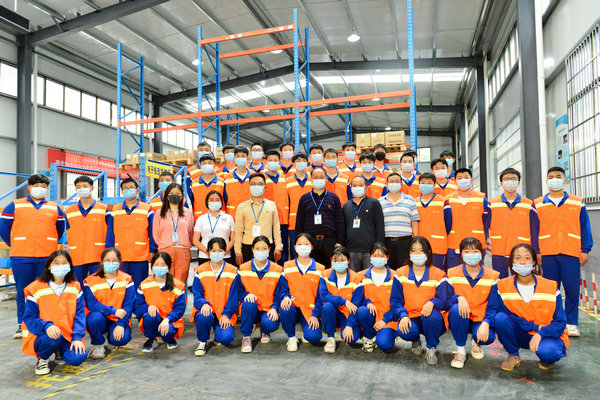 身着“意义非凡”工装1921班物流专业学生的合影
