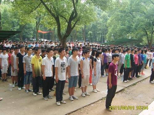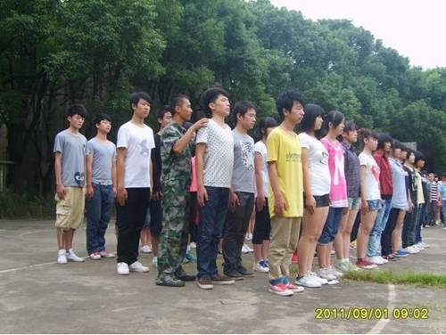 今天(9月1日)是我校财经一部新生军训的第二天,也是同学们正式开始项目训练的第一天。早上6时15分,同学们就在教官的哨声中开始了晨练。上午的训练项目有队列练习、军容军姿等。午休后,全体同学在操场上练习站立军姿,同学们严格按照教官的要求,双腿并拢,腰板挺直,两眼平视前方,就这样一动不动站立了40多分钟,期间每当教官问同学:“能不能坚持?”,同学们都无比响亮地齐声回答“能!”。站完军姿后,基地的刘总教官表扬了同学们又一次的战胜了自己,并提议为身边的战友鼓掌,也为自己鼓掌。