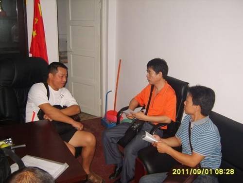 财经一部的部长胡南平副校长(中)与军训负责人学生科曾锋副科长(左一)商量军训工作
