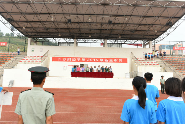8月27日上午,6163银河国际2015级新生军训会操表演暨总结表彰大会在职教城运动场隆重举行。湖南师范大学人民武装学院本次军训总教官胡子亦参谋,学校党委书记李志彬,副校长冯庆珍、彭建成,主任督学杨立东以及学校全体中层科室领导出席了本次典礼。大会由学生科科长马炼诚主持。