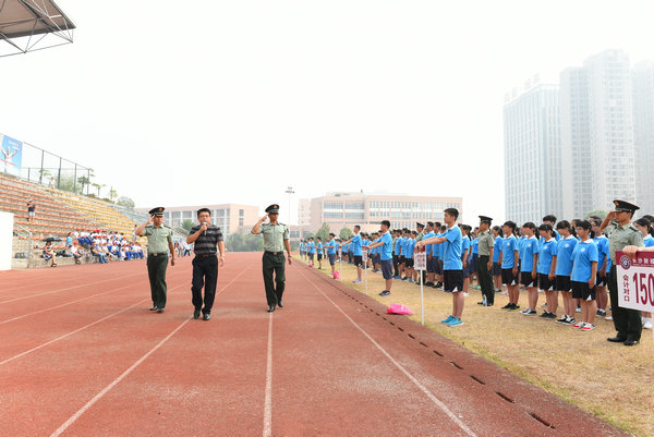 大会在雄壮的国歌声中开始。李志彬书记在军训总教官的陪同下检阅了军训方阵,同学们精神抖擞,斗志昂扬,“为学校争光”的口号响彻全场。