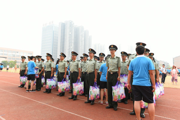 最后,由各班代表向教官赠送礼物,整个广场上响起了“教官辛苦了!”的呐喊声,同学们和教官几天来的朝夕相处建立了深厚的感情,个个都难掩离别之情。