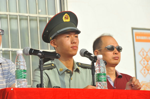 陈全宝校长首先向前来我校承担军训任务的各位教官表示热烈的欢迎,向即将踏入军旅生活的各位新同学表示热烈的祝贺。陈校长向同学们提出三点要求:一要以振奋的精神状态,端正态度,接受军训的锤炼;二要聚精会神搞好军训,高标准高质量完成训练任务;三要学习解放军严明的纪律,过硬的作风,从而自觉地遵守学校的一切规章制度,努力做一个遵纪守法的高中生。