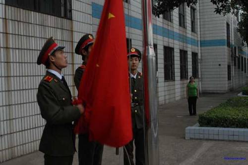 秋风送爽,天高云淡。9月27日,我校隆重举行了以“欢庆祖国华诞,永志爱国情怀”为主题的升旗仪式。升旗仪式上,国旗班的同学身着威武的军装升旗,全校师生一起高唱国歌。教育处文主任作了同一主题的国旗下讲话,号召全体师生用实际行动来表达我们的爱国之情,并要求同学们学好专业技能、锻炼好自身人品,提高自身素质,为将来能成为有益于国家的人做好准备。最后师生同祝伟大的祖国繁荣富强!(文/文艺平 摄影/赵建交)