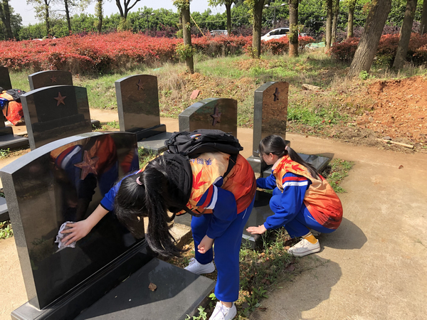 公祭仪式结束后,同学们认真听取了同行大学生讲解革命烈士的英雄事迹,并清扫墓碑,以表崇敬之心。