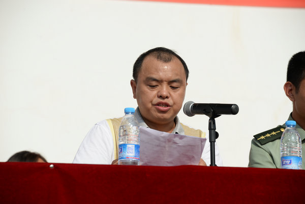 仪式在慷慨激昂的国歌声中拉开帷幕。校长陈全宝发表了热情洋溢的动员讲话,他首先代表学校对新生的到来表示热烈的欢迎,对承训本次军训的部队官兵表示衷心的感谢,并勉励所有参训同学:中学阶段是人生的黄金阶段,在人生的这一主要时段,同学们要成为一个文明健康的高素质的现代人,除了掌握符合时代要求的种种文化知识外,更要有强健的体魄、顽强的意志、坚强的信念、协作的精神。希望同学们通过军训的洗礼,陶冶情操,磨练身心,在困难和挫折面前变得更加坚强而自信。陈校长提出要求,希望同学以振奋的精神状态,端正态度,接受军训的锤炼,高标准高质量完成训练任务。同时要学习解放军严明的纪律,过硬的作风,从而自觉地遵守学校的一切规章制度,上好新生“第一课”,努力做一个遵纪守法的中职生。