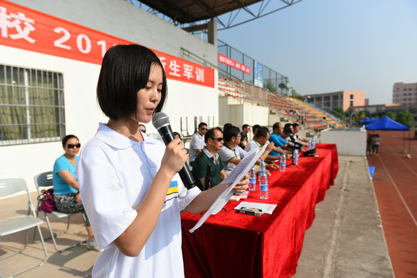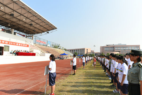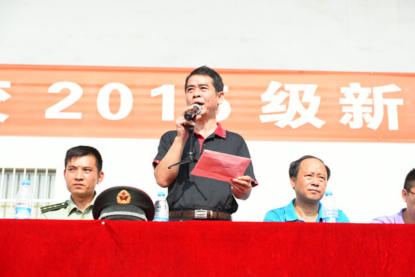 鹏程万里奋今朝,壮士豪情谱新篇。8月23日上午,我校2015级新生为期五天的军训在职教基地和荷花池校区同时拉开序幕。上午八点半,职教基地校区军训开营仪式在运动场上举行,学校校长陈全宝,副校长胡南平、冯庆珍、彭建成、主任督学杨立东及全体行政干部出席了开营仪式,仪式由学生科科长马炼诚主持。