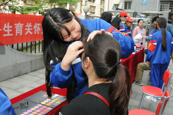 形象设计专业助教为居民理发