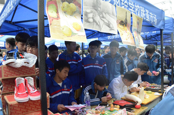 为实现资源的循环利用,传承节约的传统美德,加强校园的文化建设,为学生搭建就业创业的体验平台。11月21日,在学校领导的支持下,我校就业处与团委共同开展了“跳蚤市场”活动。活动以班级为单位作为经营者,全校师生作为消费者,集中进行了以旧物和特色DIY为主的模拟市场交易活动。