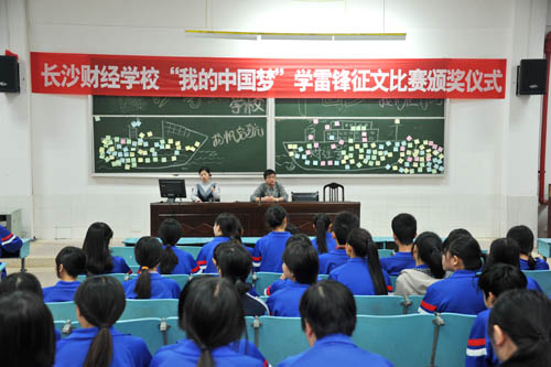 4月10日中午,“我的中国梦”学雷锋征文活动颁奖仪式在3栋教学楼T型教室隆重举行。校团委专干老师彭言智、张慧,41名获奖同学及全体入团积极分子参加了本次颁奖仪式。
