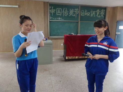 前日,由校团委组织的中华传统节日知识竞赛在音乐教室举行。本次比赛由德育教研室组织初赛,推荐15名同学参加复赛,每位参赛同学可带三名后援团参赛,在比赛过程中有三次求助后援团的机会。比赛分三轮,第一轮为必答环节,15位选手抽取答题序号依次答题,比分前八名进入第二轮的抢答环节,在主持人宣布抢答开始后举牌进行抢答,答对加分,答错则扣除相应的分值;比分前五名的进入第三轮的擂台战,两人依次PK,最后守擂成功的为本次比赛冠军。