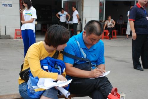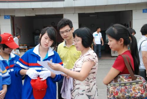 校团委胡平书记与班主任一道查看志愿者活动情况记载 |