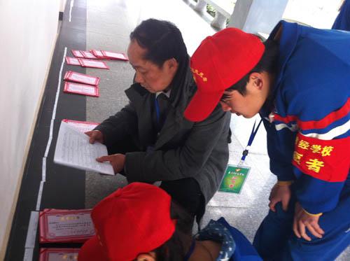 3月24日上午7点20分,80多名志愿者准时在各自的服务地点集合。为提高工作效率,校团委将志愿者划分为4个组,即引领组、考场引导组、现场管理组和保洁组,分别负责校门口执勤及引领各支代表队签到、引导各支代表队入考场、维持现场秩序并处理突发状况、维护整个校园的卫生保洁工作。