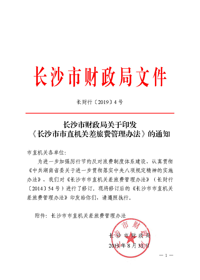 长财行〔2019〕4号长沙市市直机关差旅费管理办法
