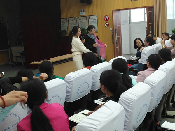 何老师从服饰搭配的四大要素、教师服饰搭配的要求、丝巾与服装的搭配等方面着手,阐述了“干净比时髦更重要”的教师服饰搭配要点;向在座的老师们推荐了几种端庄得体的“快速搭配法则”,强调了教师的穿着和妆容都应该符合自身的职业形象,不能穿得花里胡哨,不宜装饰得珠光宝气,更不可邋里邋遢和浓妆艳抹。何老师还与到场的老师们进行了互动,为大家示范了丝巾的几种常见系法。最后,何老师说,尽管教师的内涵比服饰更重要,但拙劣的服饰和缺乏品位的打扮也会减损教师的内涵、气质。学会穿衣打扮,能优化教师外形,尽显教师的职业形象。老师们纷纷为何老师点赞,他们说,听了何老师的课,以后再也不用为穿衣搭配发愁了,希望这样的讲座能多开几场,成为塑造教师职场形象的教科书。