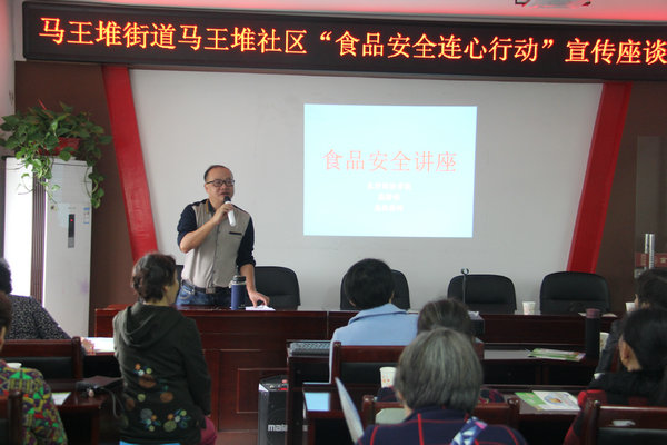4月27日上午,我校受邀于长沙马王堆社区,共同为社区居民开展了一场主题为“食品安全我先行”的食品安全知识讲座。主讲的是我校高级讲师、高级营养师熊曙明老师。