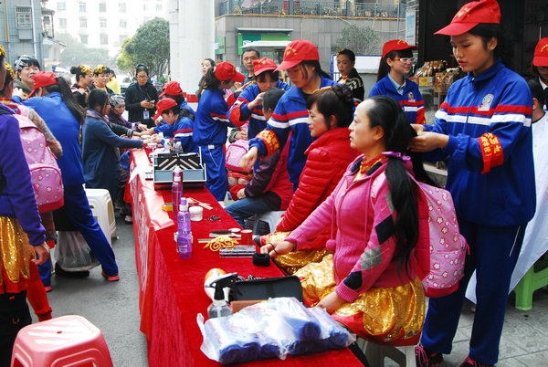 形象设计专业学生在位社区居民化妆