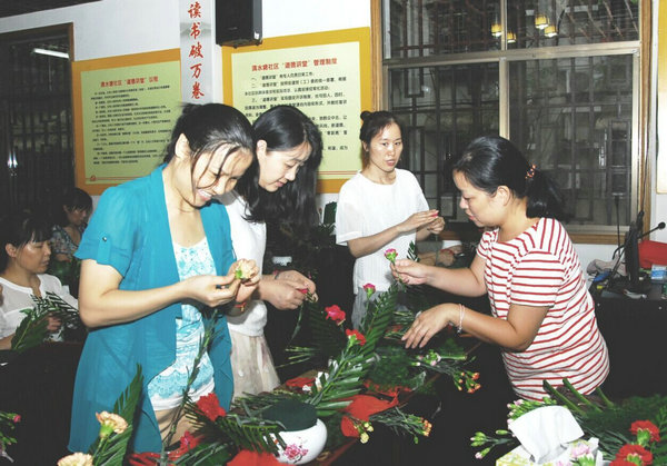 此次女士素质提高班课程包括插花与茶艺、实用书法、服装搭配与化妆美甲、以及常见点心制作等,我校培训中心主要负责联络授课教师、场地布置、材料分配以及活动指导。此次活动,得到了居民们的热力追捧,可由于场地限制,30人限额已满后,仍有居民络绎不绝的前来询问,并纷纷表示惋惜。