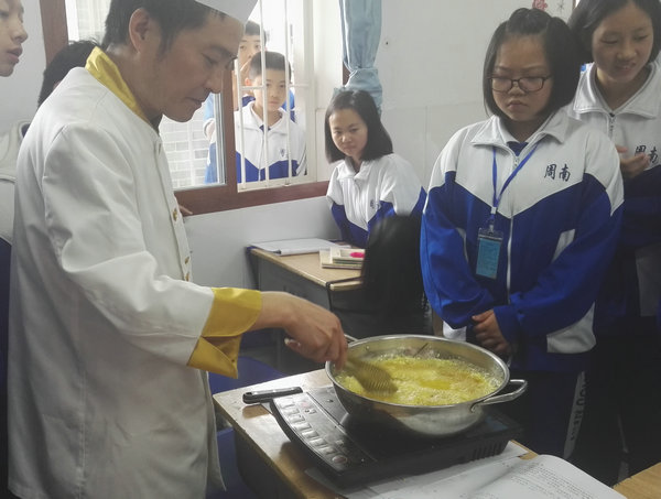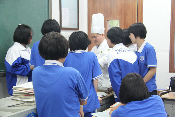 6月中旬以及下旬,我校中餐烹饪教研室的聂波和林伟两位老师带领周南实验中学初一年级的学生们走进了快乐的美食世界。