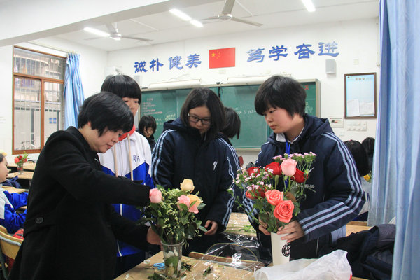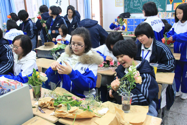 3月7日、14日、21日,周南实验中学1622教室内热闹非凡,我校酒店管理与服务教研室的优秀青年骨干教师魏虹为初一的孩子们带来了插花系列课程。结合孩子们的年龄特性和周南实验中学的实际情况,魏虹老师选取了“鲜花礼盒”和“杯花”等易懂易上手操作的实用型插花课题。课堂上,魏老师以娴熟的专业技能和和蔼可亲的教学态度,赢得了孩子们的喜爱。孩子们围着老师,在她的耐心指导下,制作出人生的第一个插花作品。孩子们笑着,喊着,炫耀着自己的作品。兴奋和欢乐,感染着作为教师的我们。