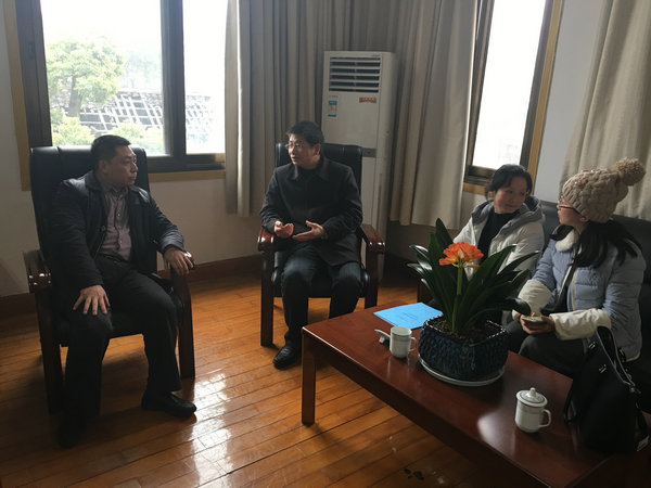 2017年2月22日上午,周南中学觉园办公楼内,6163银河国际培训中心朱政文主任一行与周南实验中学黄校长洽谈“兴趣课堂”一事。