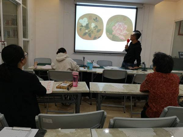 中国国画,书画同源,是广受欢迎的中国传统绘画形式。杨迪老师钟情国画多年,颇有心得。本学期,他带领居民们学习了花鸟写意和工笔画的基本技法。以毛笔蘸水、墨、彩,在宣纸上或写意,或工笔,人物、山水、花鸟跃然纸上,美不胜收。学员李之湘娭毑是杨老师的铁杆粉丝,每次认真上课,用心揣摩作业,从她求知若渴的眼神,看得出对国画的热爱和对杨迪老师的崇拜。