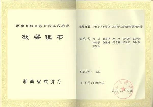11月,在2017年湖南省职业教育省级教学成果奖评选中,我校共获得一等奖1项、二等奖3项、三等奖3项;在长沙市第二十二届“友谊教育科研奖”评选中获二级二等。充分体现了我校教育教学教研的水平和质量,彰显了国家示范校和省卓越校的品牌。