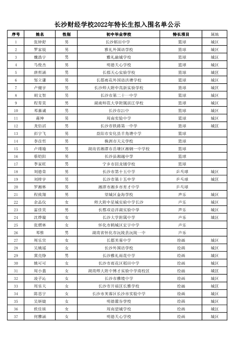 长沙财经2022年秋季特长生拟入围名单(公示)