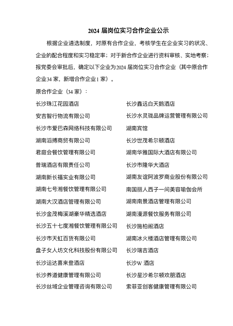 2024届岗位实习合作企业公示