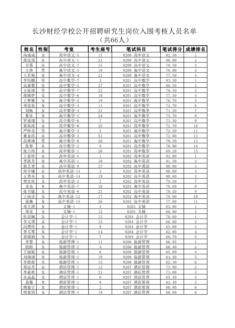 我校2024公开招聘研究生岗位的笔试阅卷、核分、资格初审工作已经结束,现将入围考核名单予以公布。