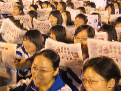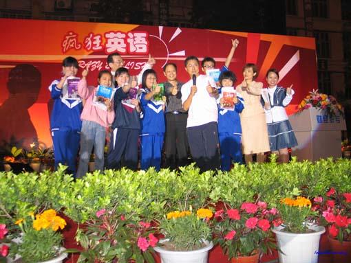 327晚,长沙市财经职业中专学校的校园里格外地热闹,著名英语口语专家、疯狂英语创始人李阳正在这里激情演讲。操场上,近两千名师生一起,和李阳老师疯狂了一把。
