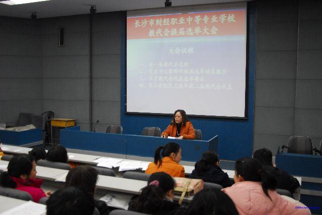 2008年1月8日下午,长沙市财经职业中等专业学校新2届教代会换届选举大会隆重举行,全体教职工参加了大会。会上,党委书记黎辉为换届选举进行了动员发言,各工会组民主推选教代会代表。按照新时期大统战思想,同时还确定和选出了列席代表、民主党派代表和少数民族代表。