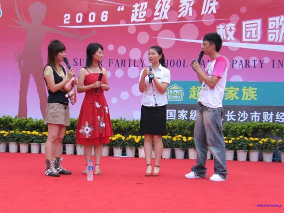 上午8:30,一辆湖南娱乐频道的客车开进了市财经职业中专学校的校园,车门打开,一众超男超女鱼贯而出,立刻引起了现场5000多名正在参加开放日的同学们的欢呼。2006超级家族校园歌友会正式唱响。严铮、夏颖现场主持,2004年超级女声湖南唱区冠军STRINGS组合、2004年超级男声湖南唱区冠军许杨、超级女声张美娜、党宁、陈西贝、超级男声袁帅等现场献歌,让同学们大饱耳福。