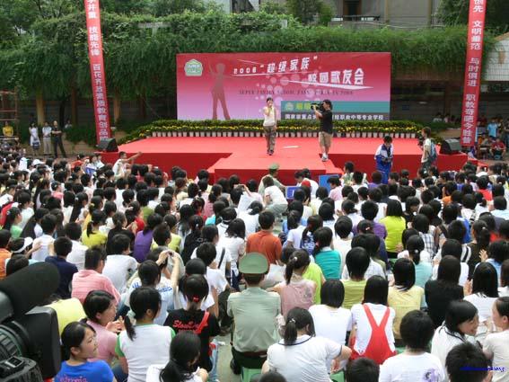 6月18日9:00,享有盛誉的长沙市财经职业中专迎来了一年一度的开放日,而这整个开放日的高潮,就是已经连续举办三年的由超级女声演出的校园歌友会。