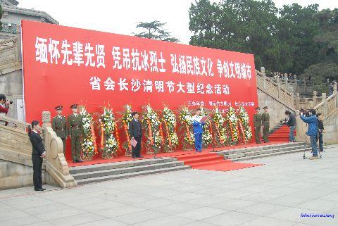 2008年4月3日上午9时,湖南省文明办和长沙市文明办组织了“省会长沙清明节纪念革命先烈活动”。我校一百名优秀同学参加了本次活动,同学们身穿统一的校服,早早地来到长沙烈士公园,站在烈士塔下深切悼念革命烈士和抗冰烈士,我校的罗郑亚同学代表全市中小学生上台发言。