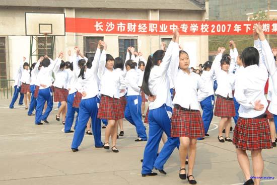暖阳高照,风和日丽,长沙市财经职业中专学校校园集体舞比赛正在进行。为贯彻落实《中共中央国务院关于进一步加强和改进未成年人思想道德建设的若干意见》和《中共中央国务院关于加强青少年体育增强青少年体质的意见》的要求,促进青少年学生健康成长、全面发展,学校领导非常重视此次活动,体育组老师和全体班主任老师认真组织。经过激烈的角逐,高一120、117。高二108班、110班获得了一等奖。(文/周仕毛  摄影/赵建交)