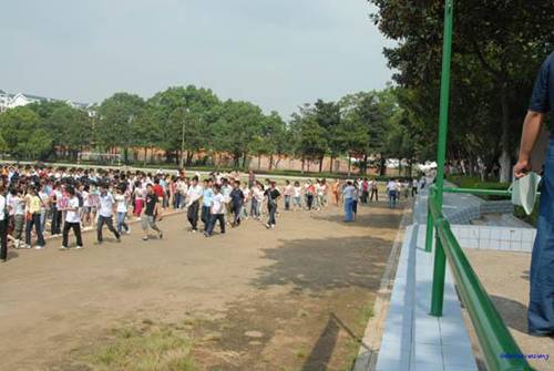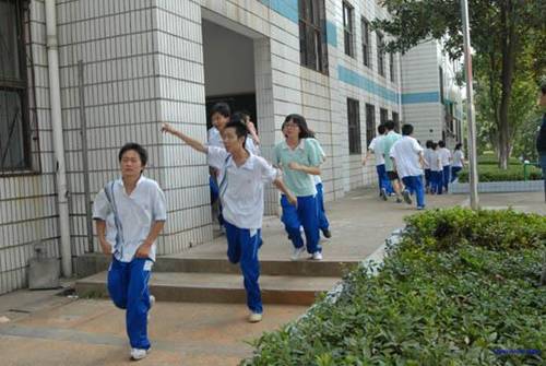 在突发灾难来临时,教室、办公室等场所不能保证师生安全,只有组织紧急疏散到安全场所避难,才能确保师生生命安全。9月1日,开学第一天,长沙市财经职业中专学校就组织了这样一次紧急情况下的逃生演练。一声警报拉响,老师们就主动自觉地撤到各个通道门口和楼道拐角,指挥并督促学生有序、迅速地奔跑到安全地带。整个活动组织有序、撤离及时、效果良好。 (文/王海燕 摄影/胡忠湘 赵建交)