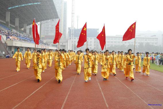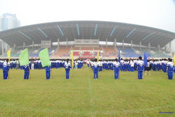 上午7:30,伴随着雄壮的音乐声,在国旗、校旗、会徽和鲜花队、彩旗队的引导下,裁判员方块队、各年级表演队、各班级代表队一一出场,接受校领导的检阅。随后,校长肖建军先生致开幕辞,校运会在热烈的气氛中开幕,本次校运会共设项目26个项目,近1000名运动员参加比赛。