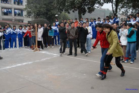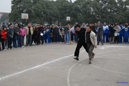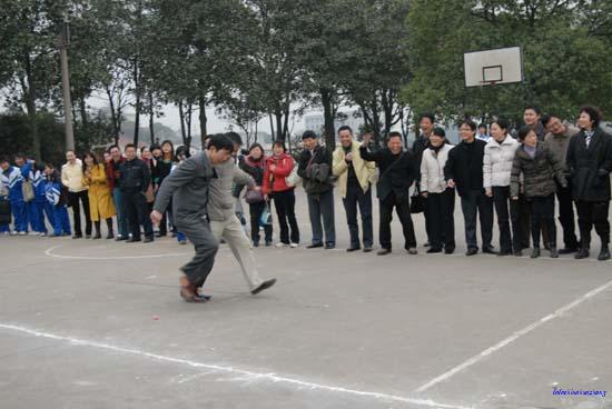 寒风瑟瑟,冬意渐浓,群众性体育活动的热潮却一浪高过一浪。12月4日下午长沙市财经职业中专校园内却洋溢着热闹欢腾的气息。学校工会组织的教职工“两人三足”接力比赛正在操场隆重举行。从校长到职员全校教职工个个踊跃参加了本次活动,比赛分八个工会小组进行,每组6队迎面接力。运动场上,运动员的奋勇争先,学生观众的欢呼雀跃,啦拉队的加油助威,构成了一幅精彩、和谐的画面。