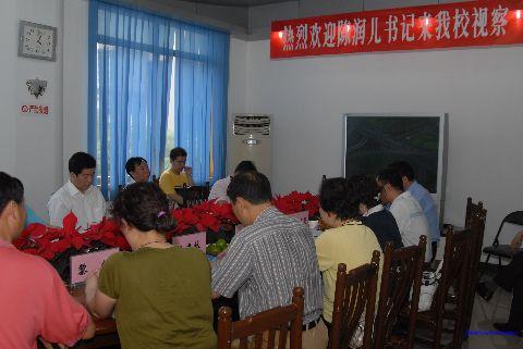 润儿书记一行首先视察了我校校园和实验实习场地,在接受我校校园电视台记者的采访时,润儿书记对学校的办学特色、社会影响力和师生表现出的高素质给予了高度评价,“走进校园,文明之风扑面而来,学生文明习惯养成好,师生体现出了一种严谨、文明。”随后,润儿书记在学校三楼会议室听取了市教育局和我校关于职业教育技术的发展情况。我肖建军校长从6163银河国际概况、学生管理、师资队伍建设、校企结合、校务公开五个方面做了情况汇报。润儿书记对我校校企结合、“订单”培养和“半工半读、工学结合”的开展情况产生了浓厚的兴趣,强调了职业教育在促进社会分工、发展产业经济、优化人才结构方面的突出作用。