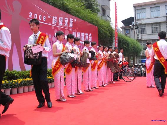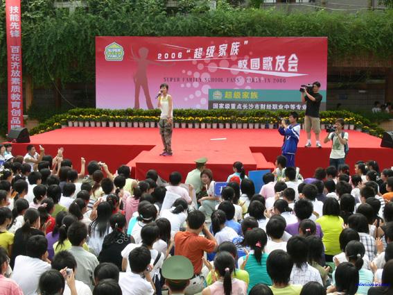 上午9:00,由该校和超级家族栏目共同举办的2006超级家族校园歌友会唱响,在湖南娱乐频道的主播严峥、夏颖携超级女声亮相财经校园的那一刻,全场的同学们爆发出经久不息的热烈掌声。超男超女不仅为同学们献上了精彩的音乐,还现场派送大奖,同学们带着中来的MP4、自行车等奖品回家时,感到格外的高兴。