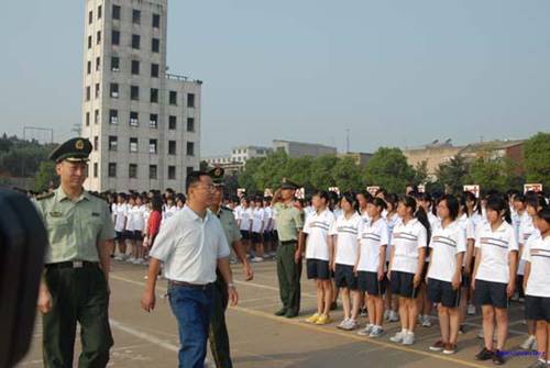肖建军校长检阅军训队伍