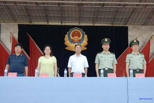 学校领导和军营领导在主席台上
